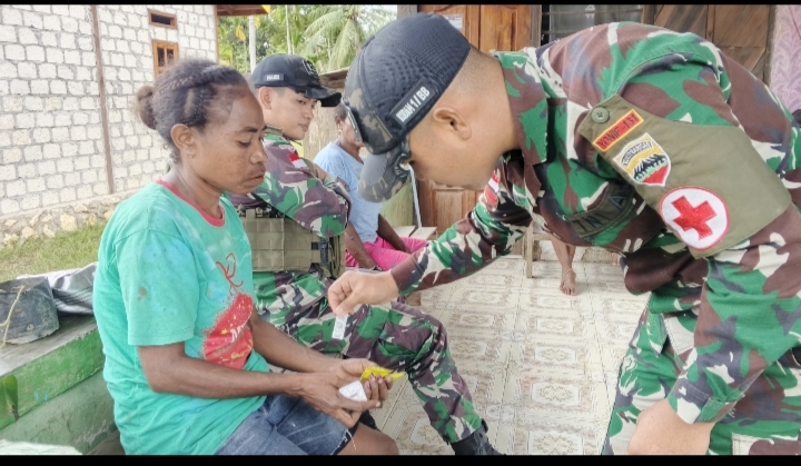 Satgas Yonif 131/Brajasakti Hadirkan Layanan Kesehatan di Kampung Sawiyatami Perbatasan Papua