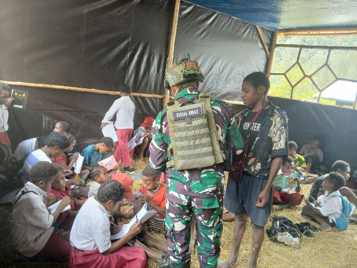 jurnalis.or.id – Di tengah sejuknya udara pegunungan Papua, prajurit Satgas Yonif 700/Wira Yudha Cakti (WYC) kembali membuktikan bahwa pengabdian tidak hanya lahir di medan operasi, namun juga di ruang-ruang kecil tempat anak-anak bangsa menimba ilmu. Dengan slogan “Selalu di Hati, Selalu Dinanti”, Pos Mayuberi menggelar kegiatan Binter Terbatas dengan menjadi tenaga pendidik di SD Mayuberi, Distrik Ilaga Utara, Kabupaten Puncak. (16 September 2025).