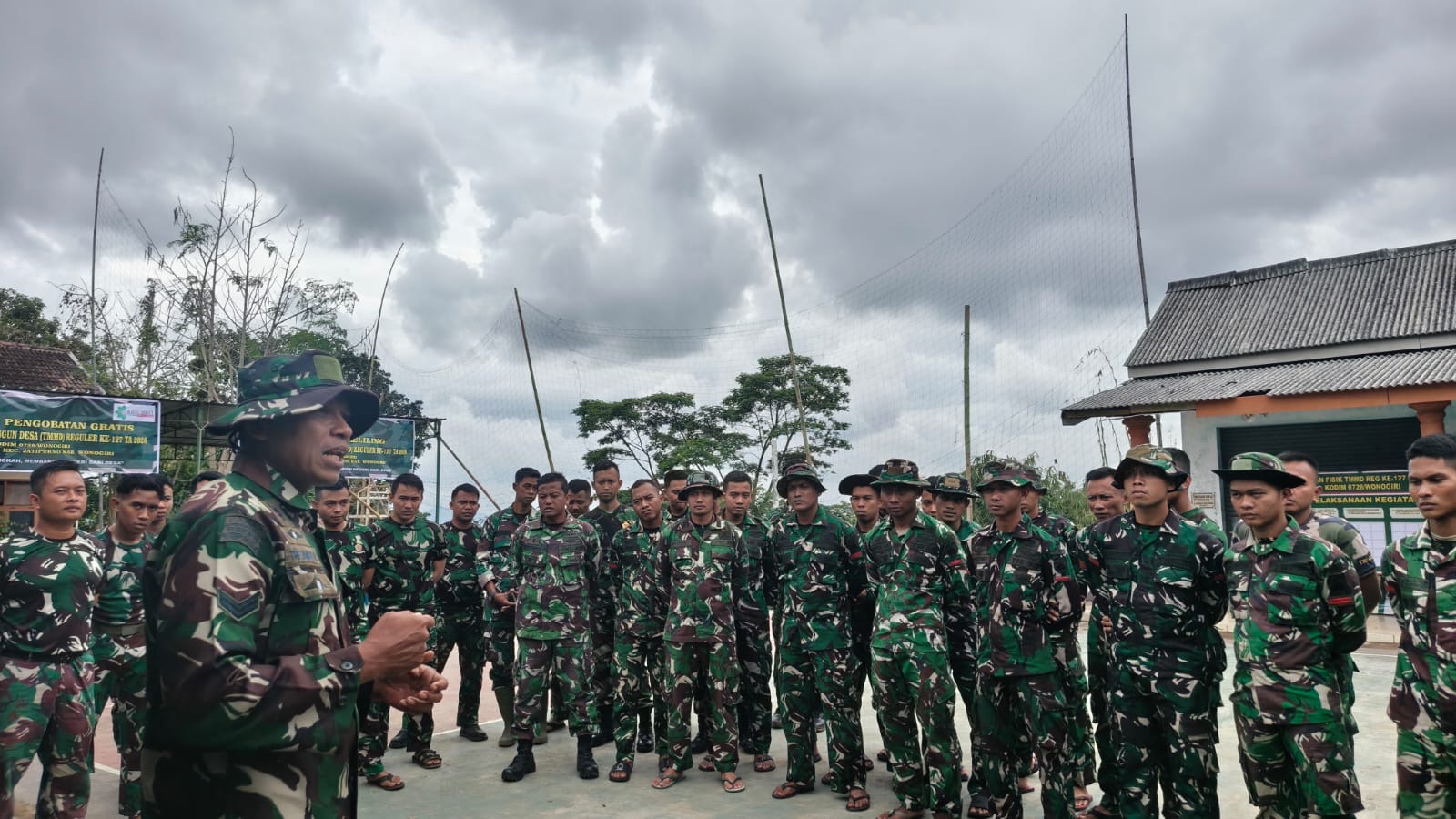 Dalam arahannya, Babinsa menekankan pentingnya kekompakan, disiplin yang paling utama, dan tanggung jawab seluruh personel agar setiap pekerjaan dapat berjalan lancar dan tepat sasaran. Suasana pengarahan tampak serius namun tetap humanis, mencerminkan kesiapan Satgas TMMD untuk bekerja bersama masyarakat demi kemajuan desa.