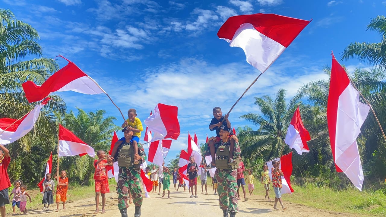 Kegiatan yang dipimpin Serda Faris ini berlangsung penuh semangat. TNI bersama warga, termasuk anak-anak Papua, mengibarkan Bendera Merah Putih di berbagai titik kampung. Bahkan, anak-anak dengan penuh antusias berkeliling kampung sambil membawa bendera, menciptakan suasana meriah dan membangkitkan rasa bangga terhadap NKRI.