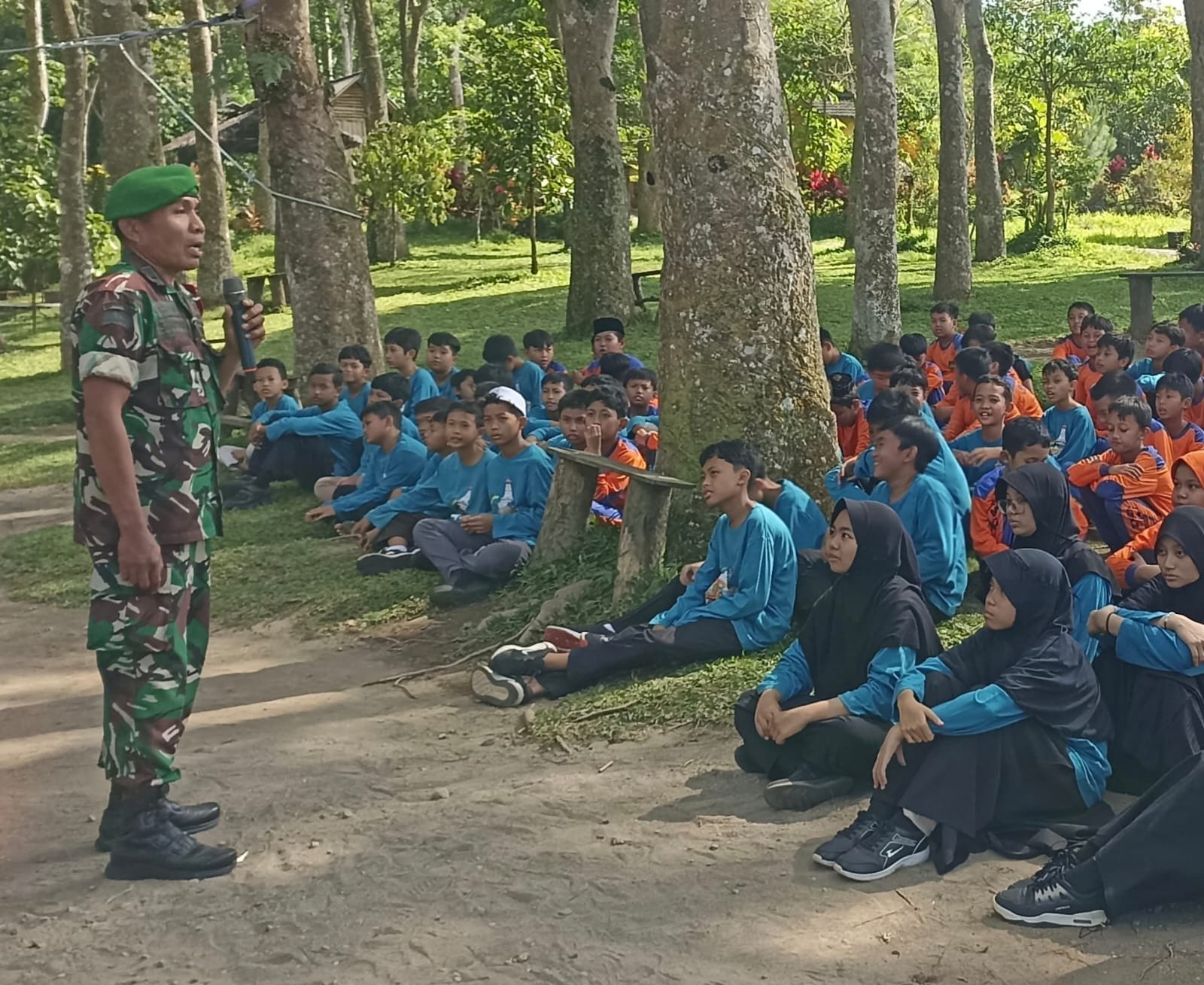 jurnalis.or.id – Dalam menanamkan semangat cinta tanah air sejak dini, Bati Komsos Koramil 0808/02 Garum Pelda Slamet R memberikan materi pengenalan Bela Negara kepada peserta perkemahan SD IT Alhikmah Kelurahan Bence. Kegiatan ini dilaksanakan di kawasan wisata Bon C perkebunan Petung Ombo Desa Karangrejo Kecamatan Garum Kabupaten Blitar, Kamis (9/10/2025).