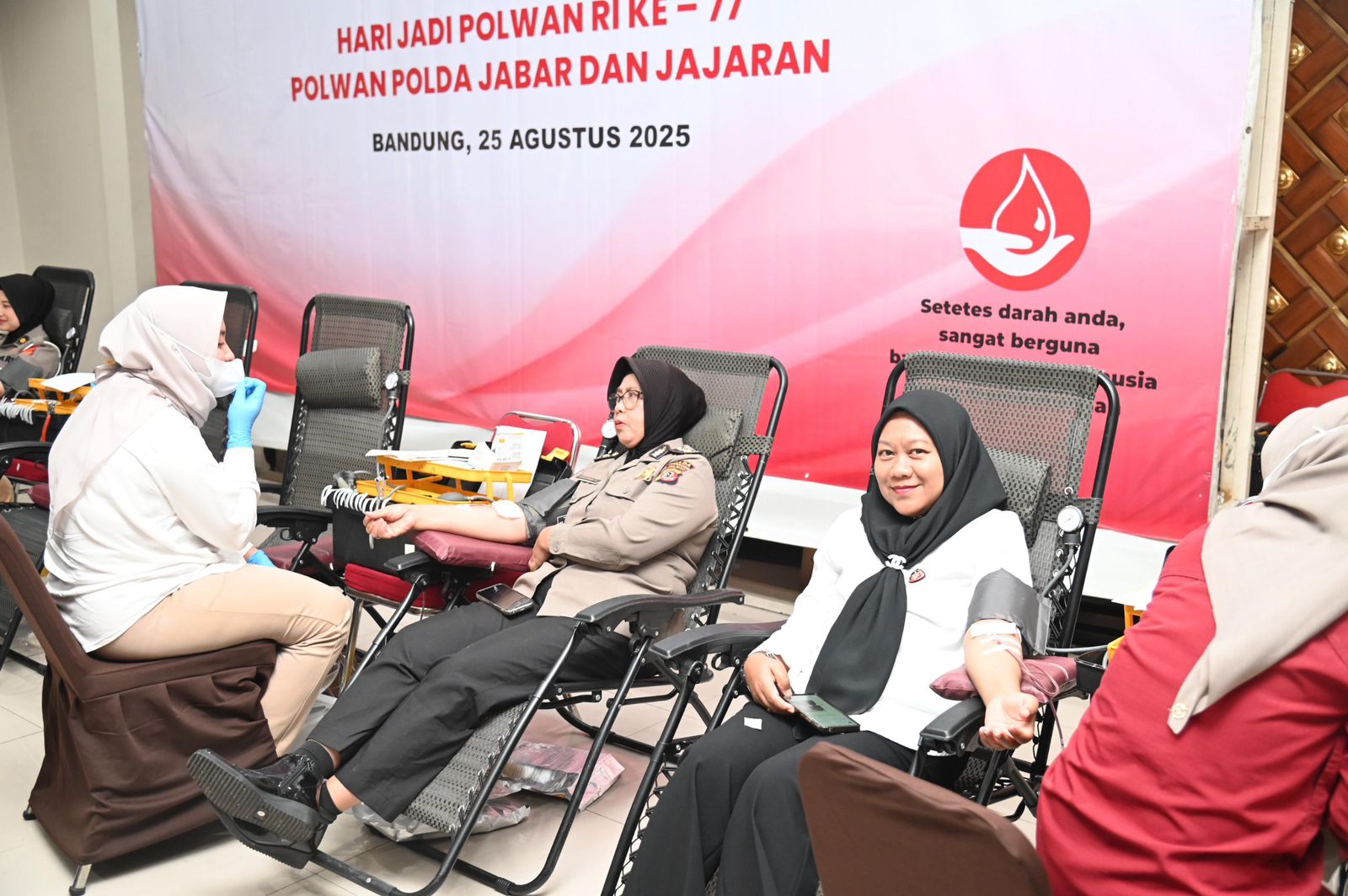 jurnalis.or.id – Senyum dan semangat kebersamaan tampak mewarnai aksi donor darah yang digelar Polwan Polda Jabar dalam rangka memperingati Hari Jadi Polisi Wanita (Polwan) ke-77, Senin (25/8/2025)