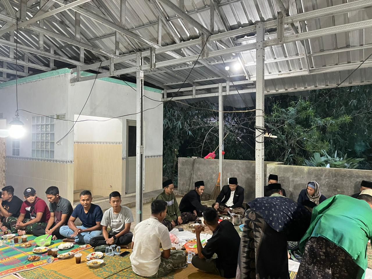 Tanpa sekat, prajurit TNI dan warga duduk bersama menanti datangnya adzan Maghrib. Momen sederhana itu menjadi potret kedekatan antara prajurit Satgas TMMD dan masyarakat yang selama ini terlibat langsung dalam berbagai kegiatan pembangunan desa.