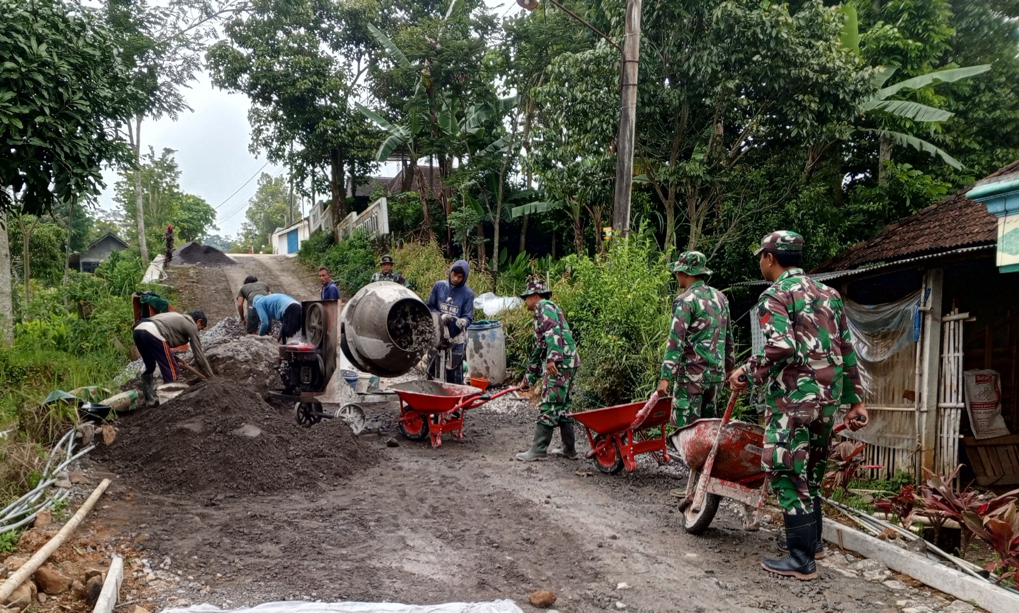 jurnalis.or.id, Wonogiri – Adukan material terus dibutuhkan dan dibuat menggunakan mesin molen secara bergotong royong antara warga dan anggota Satgas TNI Manunggal Membangun Desa (TMMD) Reguler ke-127 Kodim 0728/Wonogiri.