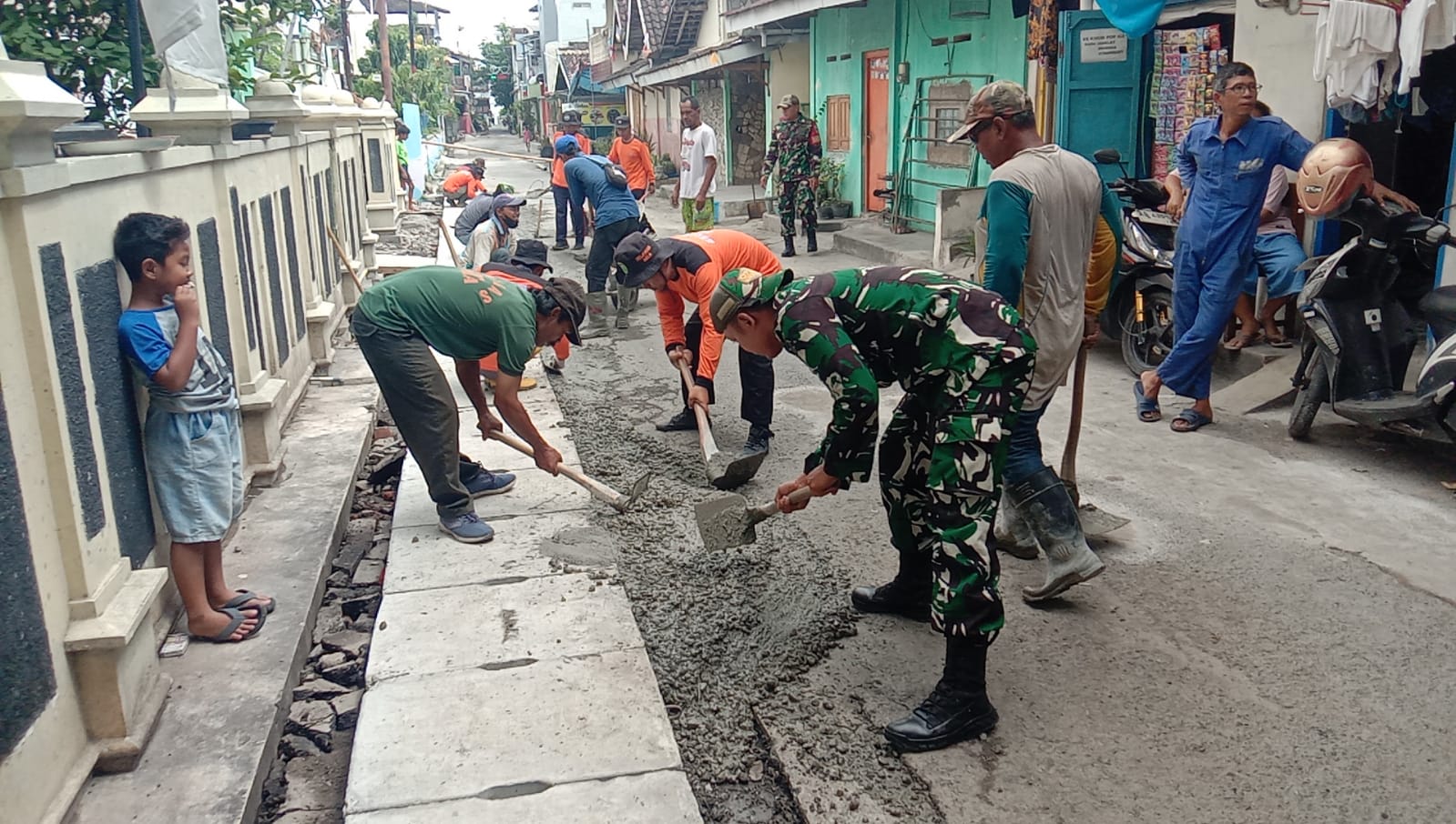 Danramil 03 Serengan Kodim 0735 Surakarta Kapten Cba Tri Rusman Prasetyo S.Sos menegaskan meski kondisi cuaca tidak menentu kadang panas terik dan Hujan. Tinggal 7 hari lagi selesai, namun semangat anggota ini tetap tinggi dan tak pernah pudar, kegiatan Hari ini yaitu pengecoran Samping Kanan Kiri Uditch.
