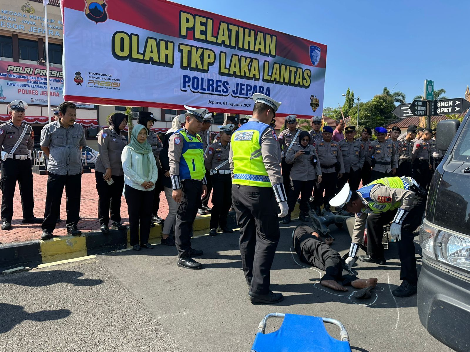 Latihan ini diselenggarakan di halaman Mapolres setempat dengan diikuti oleh seluruh personel Polres Jepara yang terlibat langsung dalam penanganan kecelakaan di lapangan.