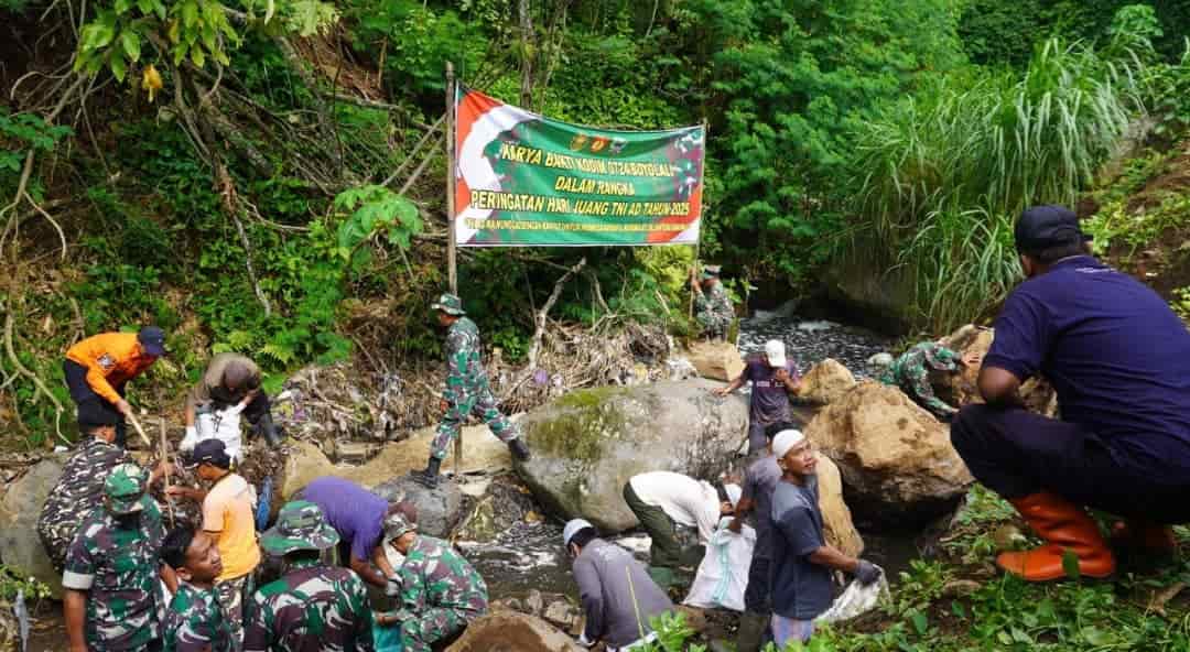 TNI AD Gelar Karya Bakti Bersihkan Sungai di Ampel Boyolali dalam Rangka Hari Juang TNI AD ke-80
