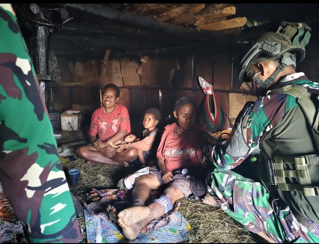 “Terima kasih banyak anak TNI sudah datang langsung ke honai saya, bantu saya berobat. Saya tidak bisa jalan, tapi kalian datang. Tuhan memberkati,” ucap Ibu Mina penuh haru sambil menggenggam tangan prajurit yang menanganinya.