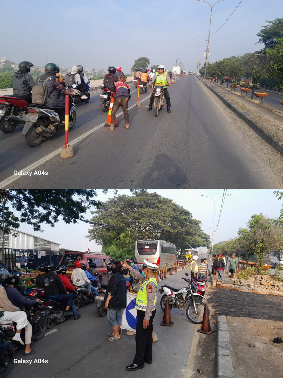 jurnalis.or.id – Untuk mengantisipasi kemacetan akibat perbaikan Jalan Layang Cikarang Utara, Kanitlantas Polsek Cikarang Utara, AKP Carmin S.H, memberlakukan sistem contraflow dari arah timur ke barat, mulai dari Lampu Merah SGC hingga Taman Pilar, Selasa (26/8/2025).