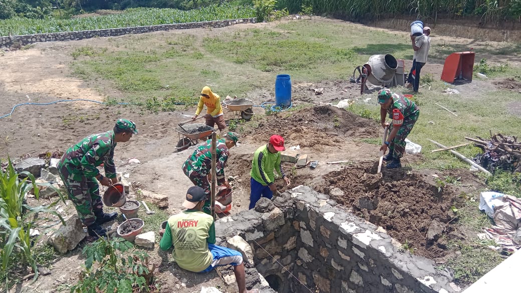 Warga dan Babinsa Gotong Royong Dalam Pembagunan Talud di Desa Tangggan
